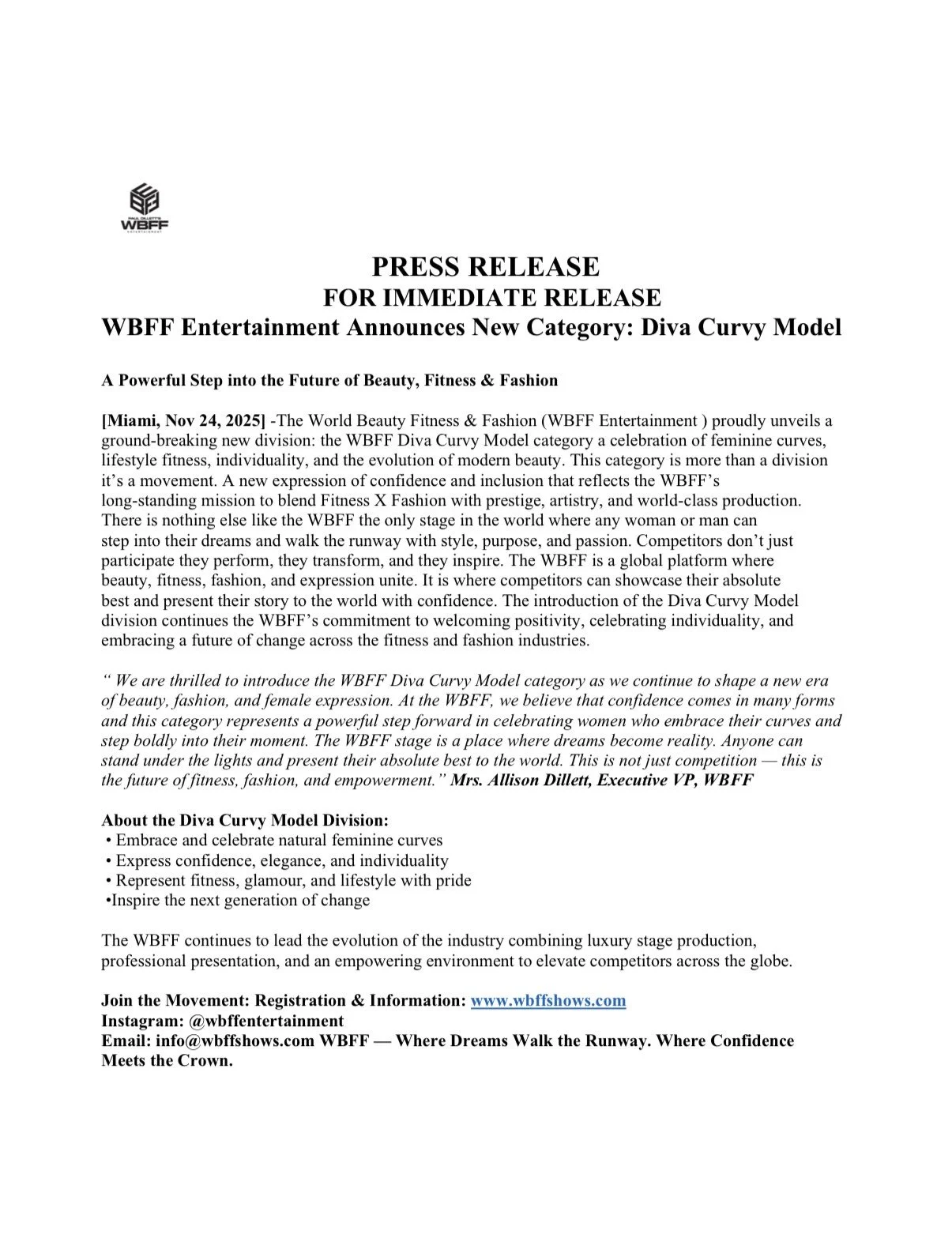 WBFF ENTERTAINMENT EVENTS OVERVIEW